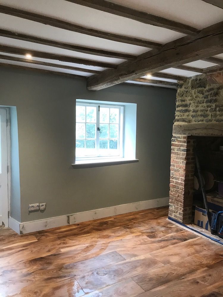 In addition, Alex restored oak timber craftsmanship throughout the property, fitted a stylish modern bathroom upstairs, and added beautiful panelled joinery to the living room – a flourish that really completed the space and added character to the building.